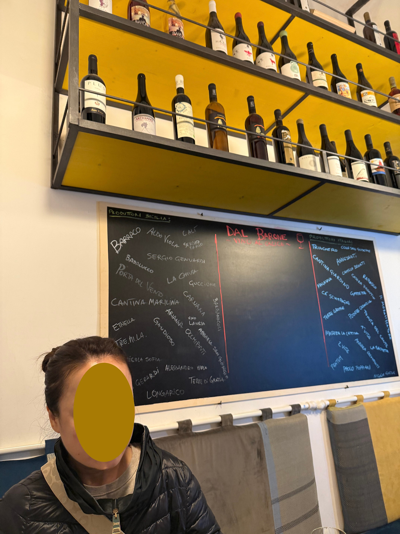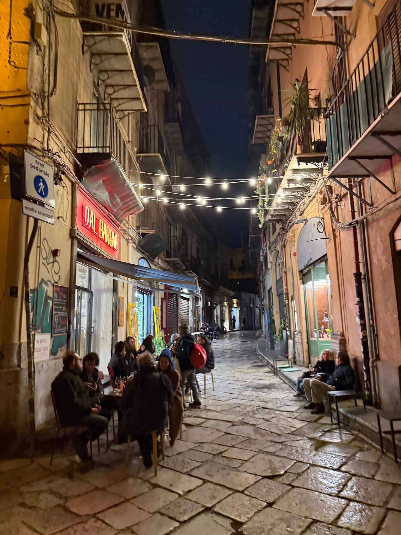 검색을 하다보면 팔레르모에 유명한 네추럴바(dal Barone)가 있다고 해서 지친 몸을 이끌고 가보았다. 네추럴 와인은 나도 그리 익숙하지는 않다. 나는 안정적이고 가격이 합리적인 일반 상업적 와인을 더 선호하는 편이기 때문이다. 일단 주인에게 와인 추천을 요청했고 이미 저녁 식사를 하면 한 병을 먹고 왔기에 가벼운 화이트 와인으로 요청했다. 첫 와인은 매우 샤우어한 와인이었는데 이 와인도 맛이 나쁘진 않았다. 두 번째 추천한 와인이 너무도 괜찮아서 한 병(24유로정도했다) 사오기까지 했는데 너무 괜찮아서 다음날 해당 와이너리를 찾아가려고까지 했다. 비가 추적추적오던 팔레르모의 작은 골목길 차가운 겨울밤에도 와인마니아들은 야외 좌석이 꽉찰만큼 분위기있게 와인을 마시고 있었다. 와인의 맛은 거칠지만 이들의 마음은 뜨거워 보였다.