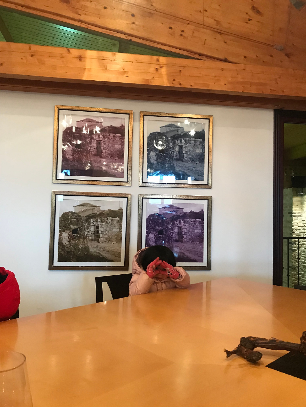 원래 일정은 13시30분에 시작하여 2시간 코스였는데 우리는 이보다 앞선 13시전에 도착하게 되었다. 주변을 둘러보다가 대기실에 앉아 있었는데 잠시만 기다리라고 화이트와인과 아이들을 위한 음료를 내왔다. 혹시나 했는데 해당 프로그램에는 우리 가족만 참여하게 되었다. 배가 고픈데 포도밭 투어를 하면 어쩌나 걱정했는데 우리 표정이 너무 배고파 보여 바로 식사를 시작하겠다고 했다.